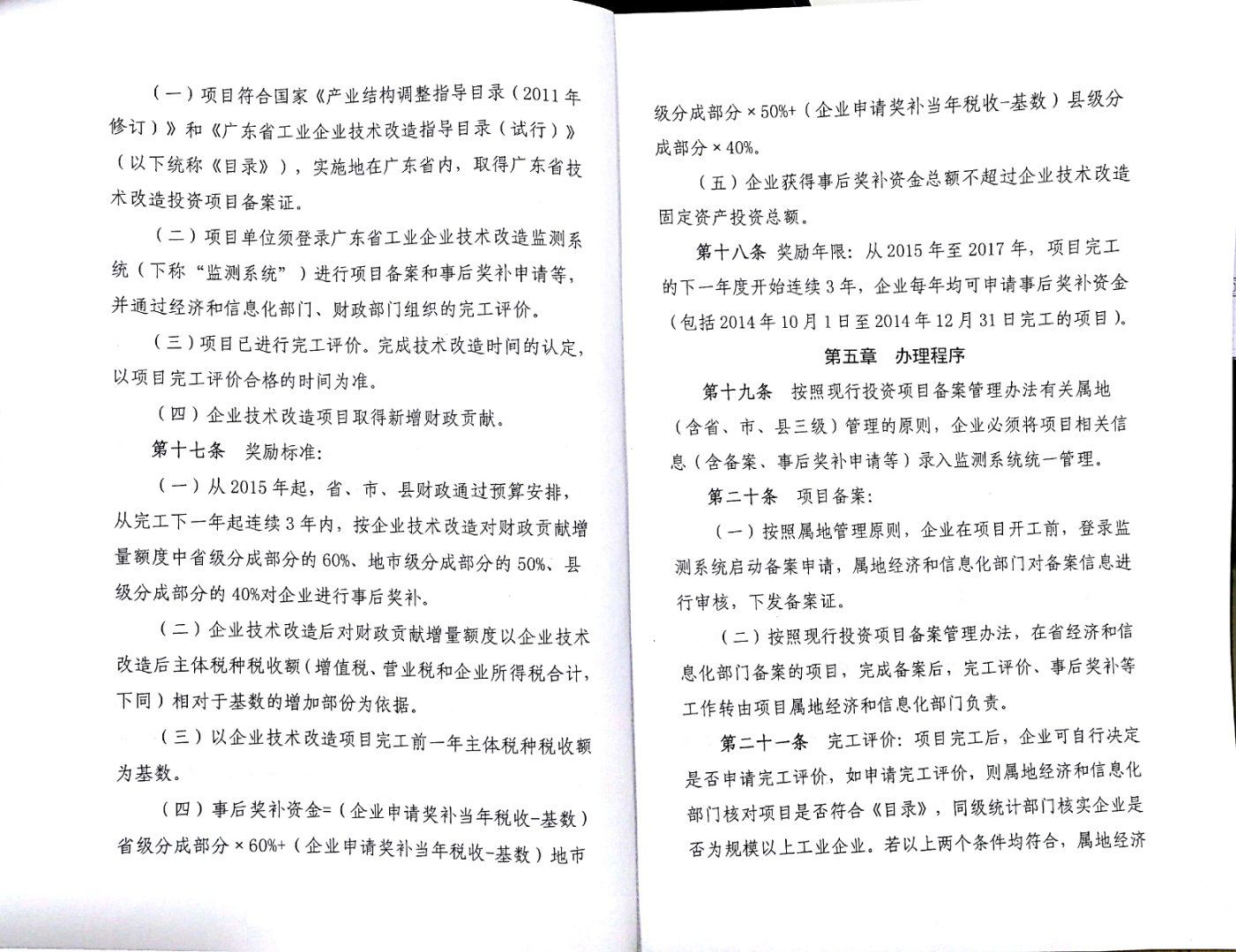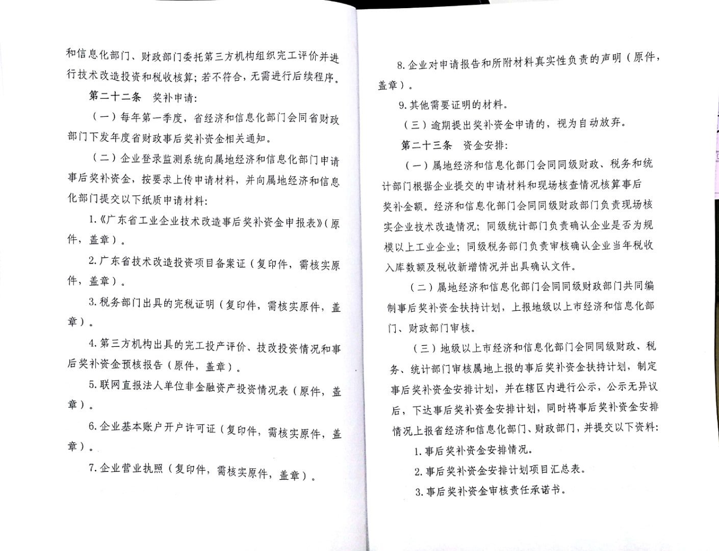 广东省工业企业技术改造事后奖补实施细则